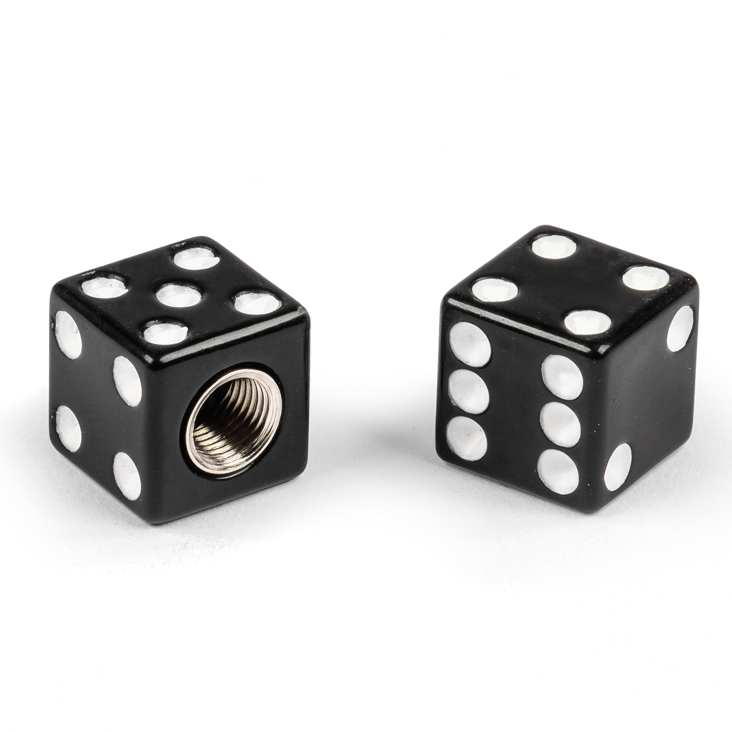 These valve stem caps screw onto the tyre valve stems to help protect them from dirt and moisture while adding a decorative, dice-style appearance to the wheel. They are a universal accessory that fits all standard automotive valve stems and do not affect tyre pressure or vehicle operation, but add a personalised touch to the wheels.
